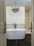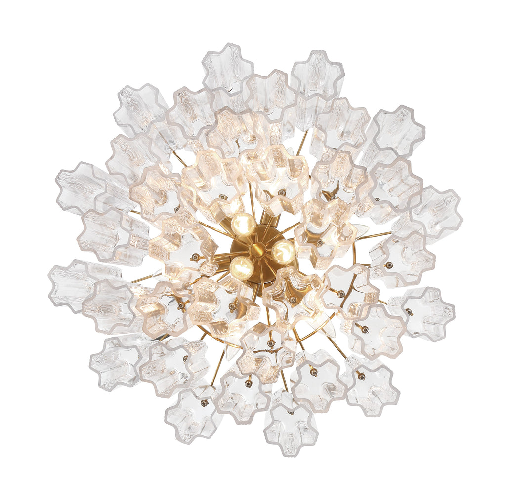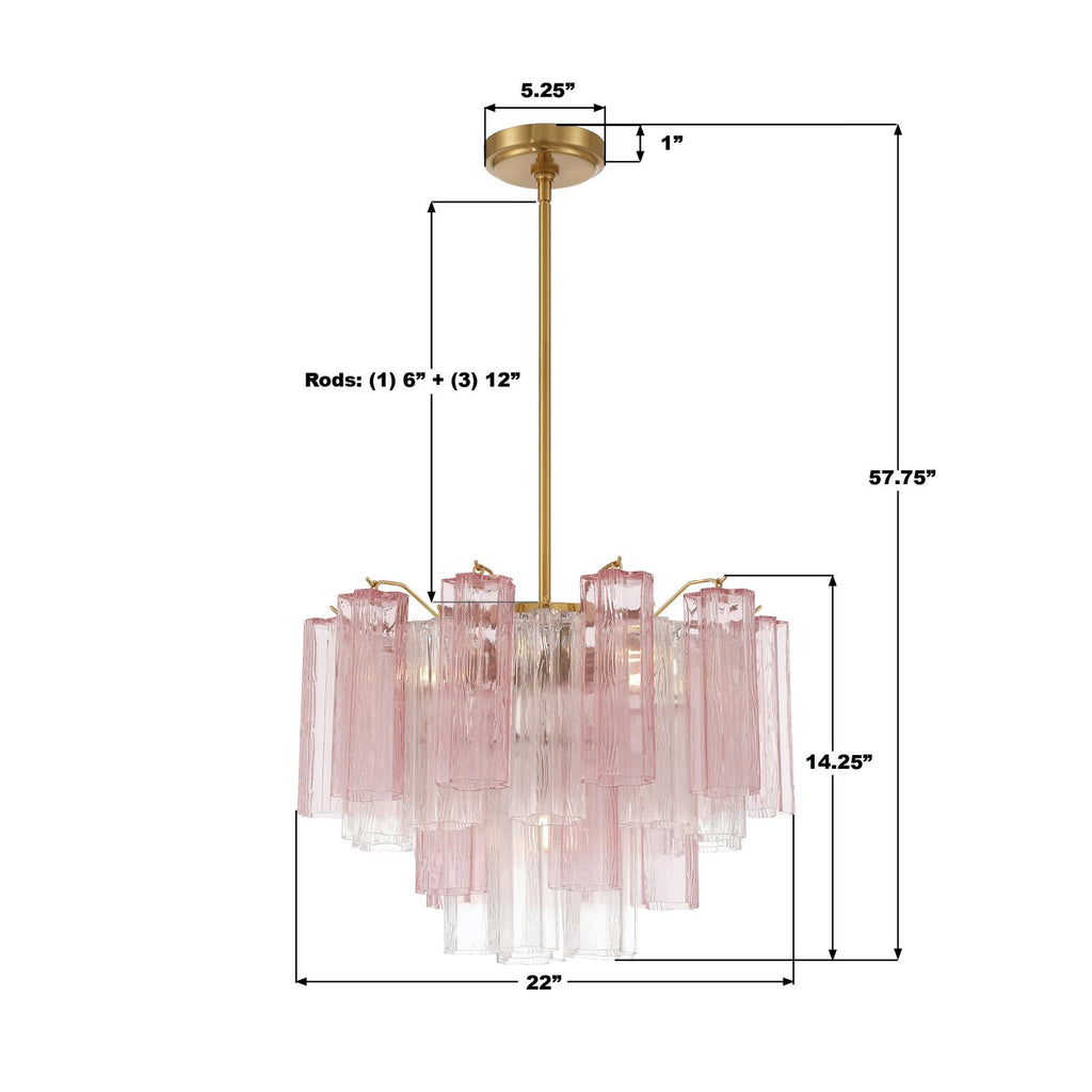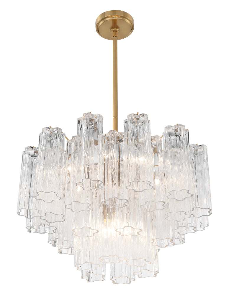 - The captivating Addis Lighting is a modern-day interpretation of the iconic mid-century Tronchi chandelier. Inspired by its predecessor's sleek lines and geometric shapes, the Addis features a Polished Chrome or Aged Brass metal frame that exudes sophistication and style. Its unique design showcases transparent tiers of textured Tronchi glass tubes, forming a mesmerizing 5-point rounded star shape. Choose from a range of glass colors, including clear, amber, smoke, and white, or the stunning Autumn and Spring options, which feature a captivating multicolor disposition. The Addis Collection offers various sizes and finishes, allowing you to find the perfect fit for your space while adding a touch of timeless elegance.