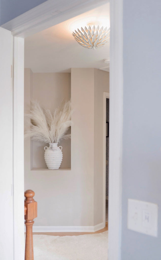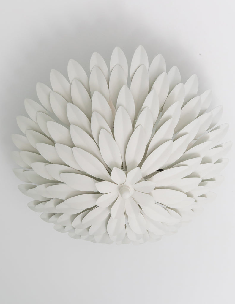 - The intricately crafted, hand-painted frame with layered leaves offers versatile installation as a wall sconce or ceiling mount.