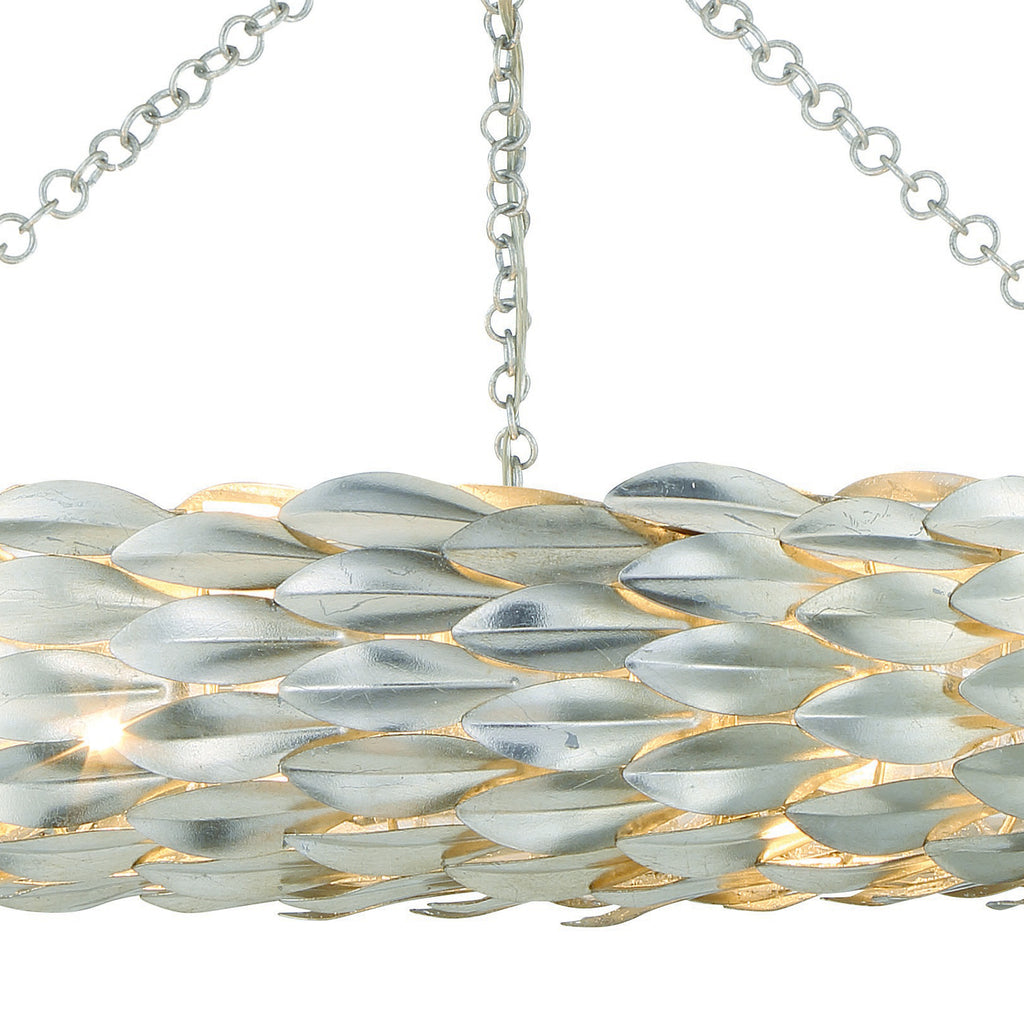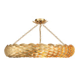 - Each light, tucked behind intricately crafted layered leaves, opens from the bottom to showcase the organic beauty of nature from every angle. Designed for versatility, it can be installed as either a chandelier or a ceiling mount.