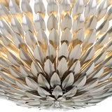 - The intricately crafted, hand-painted frame with layered leaves offers versatile installation as a chandelier or ceiling mount.