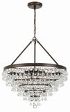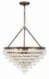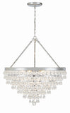 - Encased in clear glass drops, the tiered chandelier design radiates soft, diffused light.