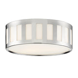 - The contemporary Kendal collection makes a statement with its graphic uniform pattern. Its metal frame surrounds white glass in this elegant drum-shaped ceiling mount. The high contrast of Vibrant Gold, Black Forged, or Polished Nickel against white glass is a great way to add a touch of drama to a room.