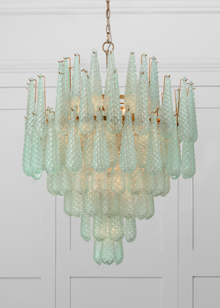 - Inspired by vintage and mid-century design, the Ollie collection features hand-blown glass with intricate raised details. The beautiful hues of this collection shift subtly depending on whether the light is on or off, creating a dynamic and artistic effect. This unique piece blends mid-20th-century charm with a modern touch, making it a true statement fixture.