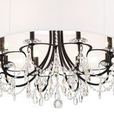 - Faceted crystal jewels elevate the plated metal finish and complement the soft glow of a diffused white silk drum shade. Designed for versatility, it can be installed as either a chandelier or a ceiling mount.