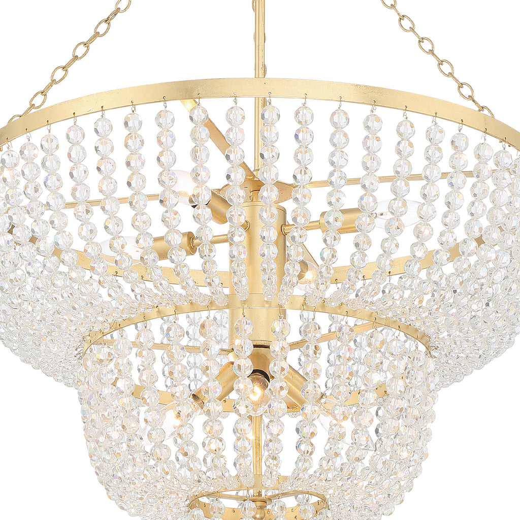 - Faceted crystal beads, seamlessly strung on gold hand-painted metal, gracefully conceal the light source in this sophisticated fixture.