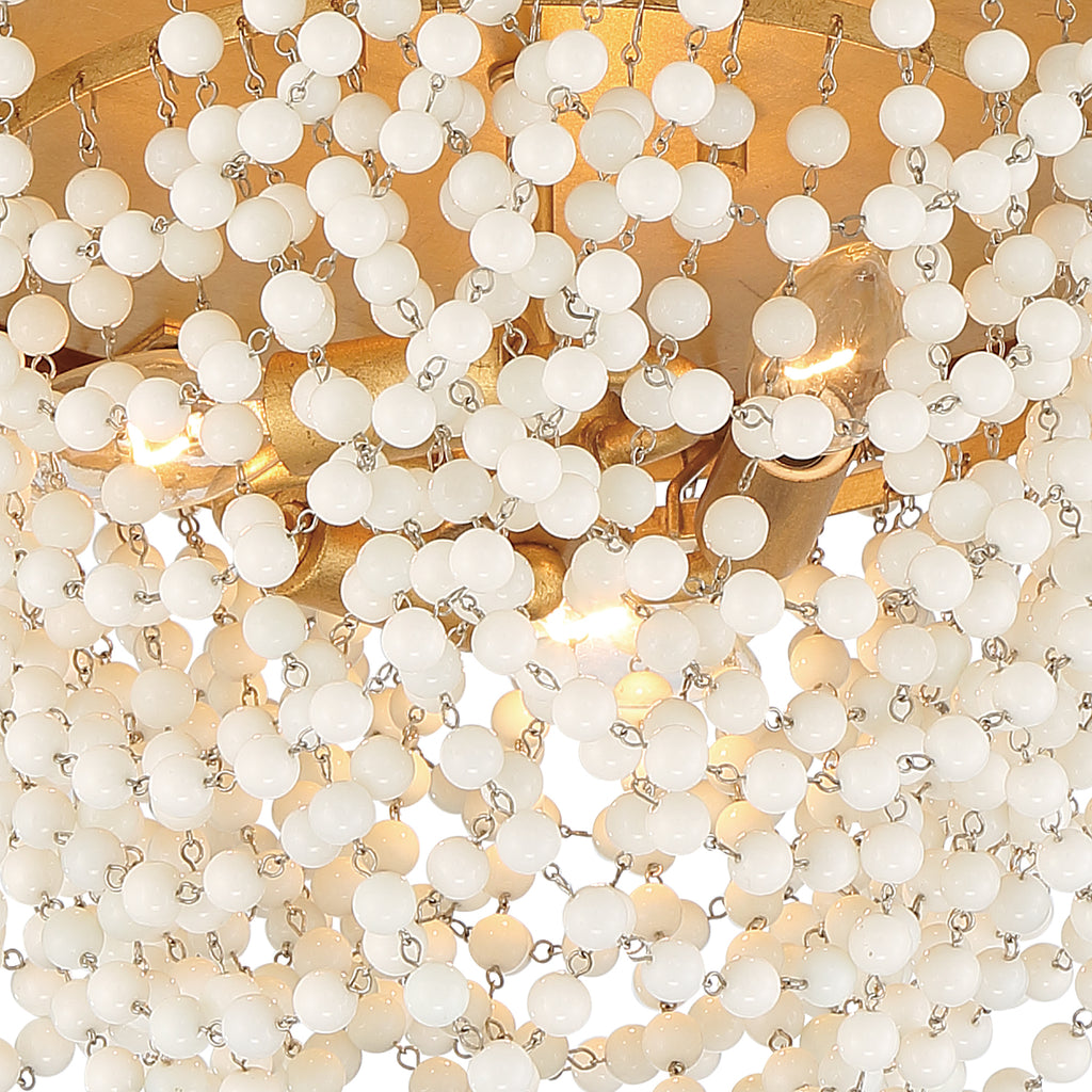 cantgetenough I purchased two of these light fixtures with white beads for my entryway. They arrived and were very well packed as pictured. They gave the space a fun classy look without looking too formal. What's even better is the pattern of light they give off when turned on (pictured). Despite all the beads, they still give off a lot of light.