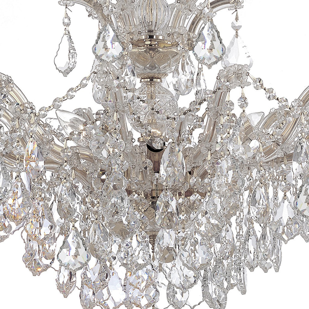 • Draped in an abundance of crystal, the Maria Theresa collection is the epitome of high style. The fixture is stunning with glass arm frame decked with strands of crystals. The fixture showcases opulence and decadence and is the perfect traditional accent to any space. Whether in a living room, or even closet or hallway, this fixture bring a luxurious addition to any decor.