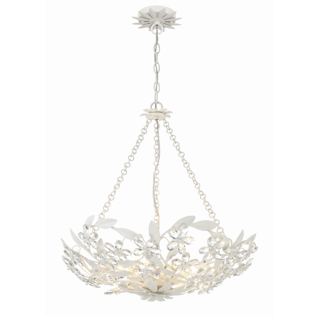 - Dual mountable chandelier or semi-flush adorned by connected crystral jewels to form beautiful flora motifs.