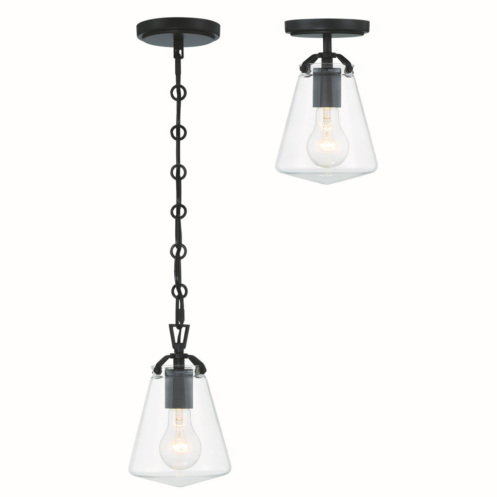 - The Voss Collection is a sleek, enduring design with subtle angular details, offered in various finishes and sizes for your unique space. Its clear glass cone-shaped pendant is closed on the bottom and fastened with metal on its open top. The patterned chain detail adds a touch of character to its streamlined design. The Voss Collection is not confined to a single style; it is a versatile design that suits a variety of spaces, from minimalist and modern to classic and eclectic.