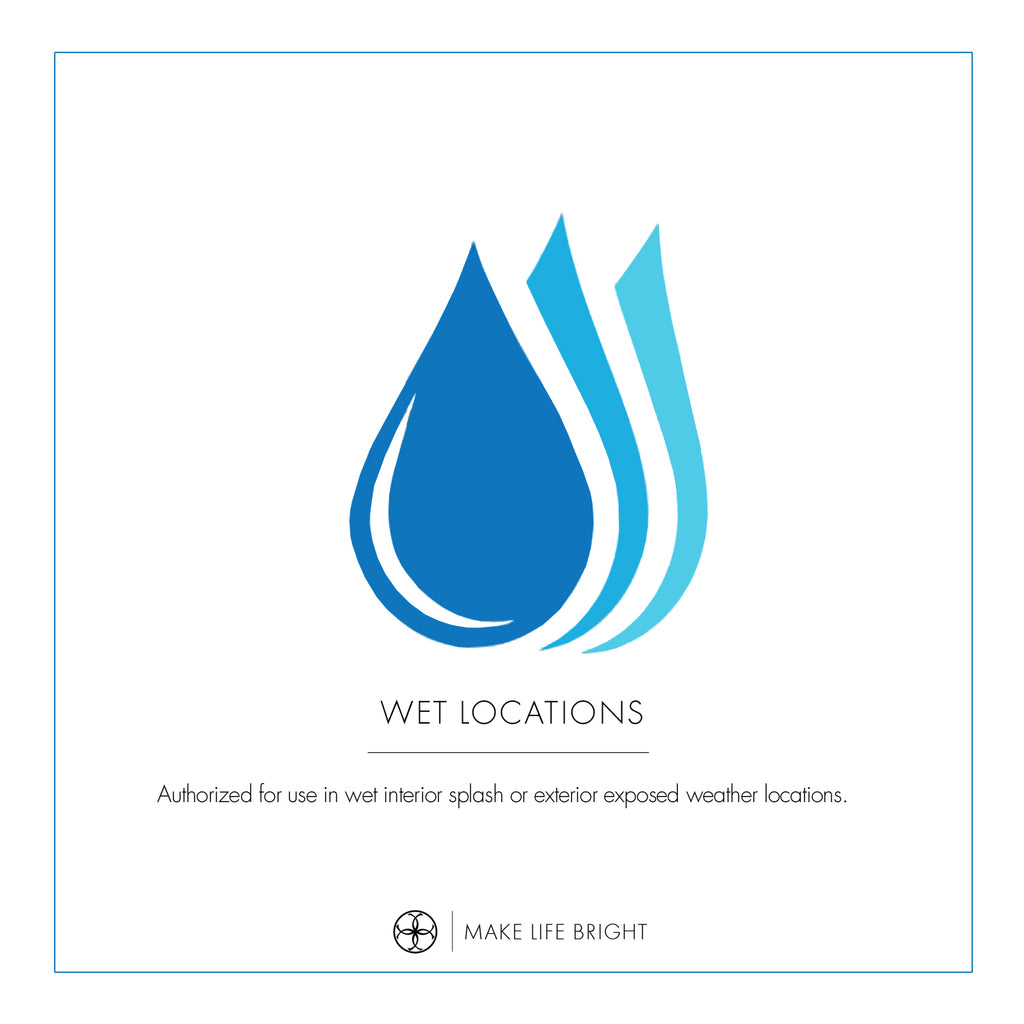 - Authorized for use in wet interior splash or exterior exposed weather locations. Meets United States UL Underwriters Laboratories Product Safety Standards.