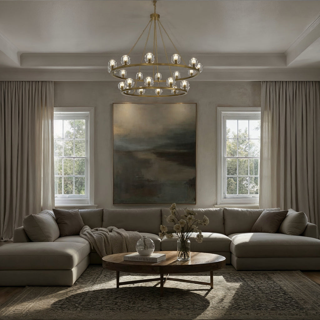 - Finely crafted with great attention to detail, the Aragon Collection is a mix of industrial meets modern style. The minimalist look includes rods attached to a large frame, hand cut crystal globes or alabaster shades, and packed-in G9 Dimmable LED Bulbs, (rated at 3000K, 400 lumens and CRI 80). This functionally timeless fixture can be hung with upward or downward-facing light giving you the flexibility to choose how you would like to set the mood of the room.