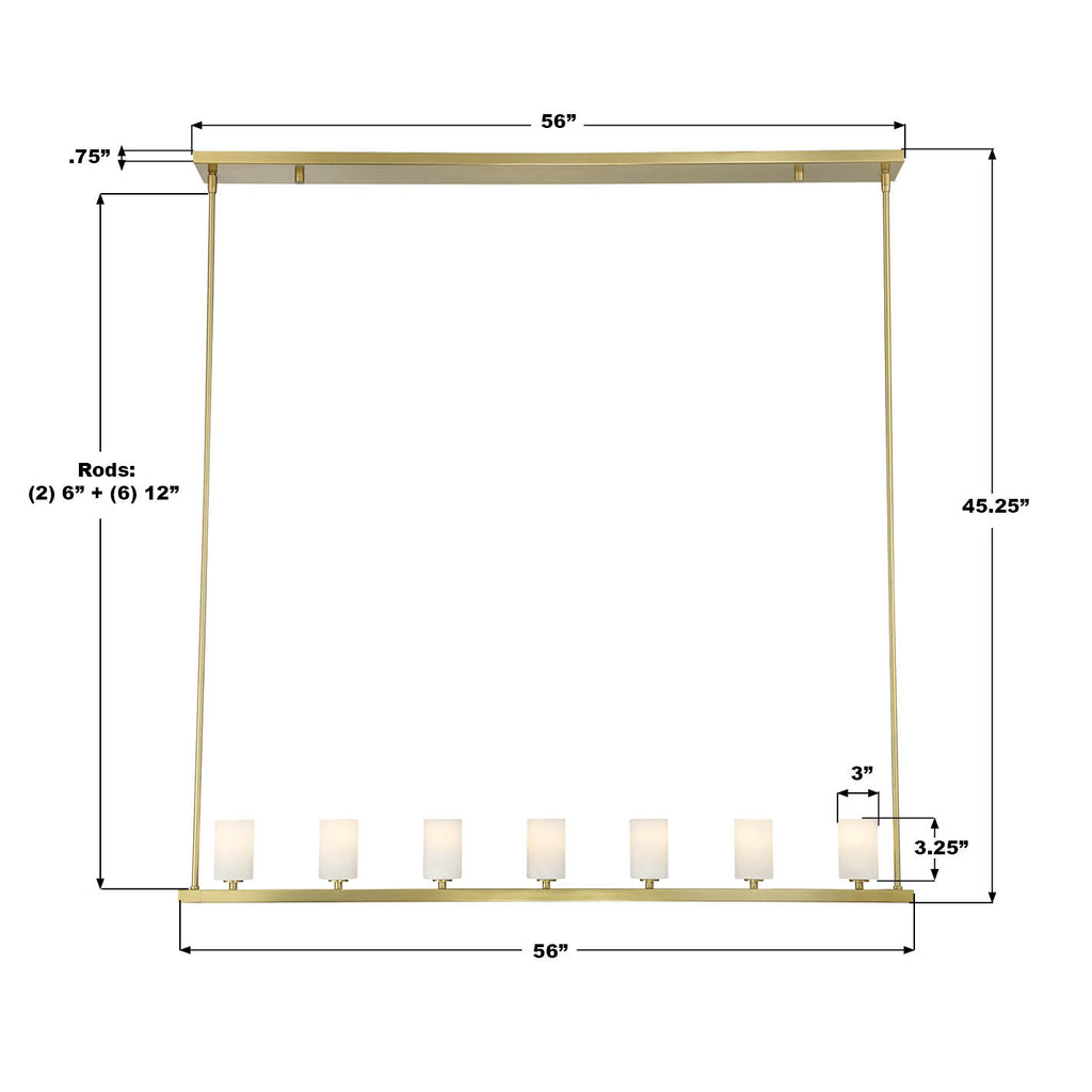 Includes Down Rods: (2) 6" + (6) 12"