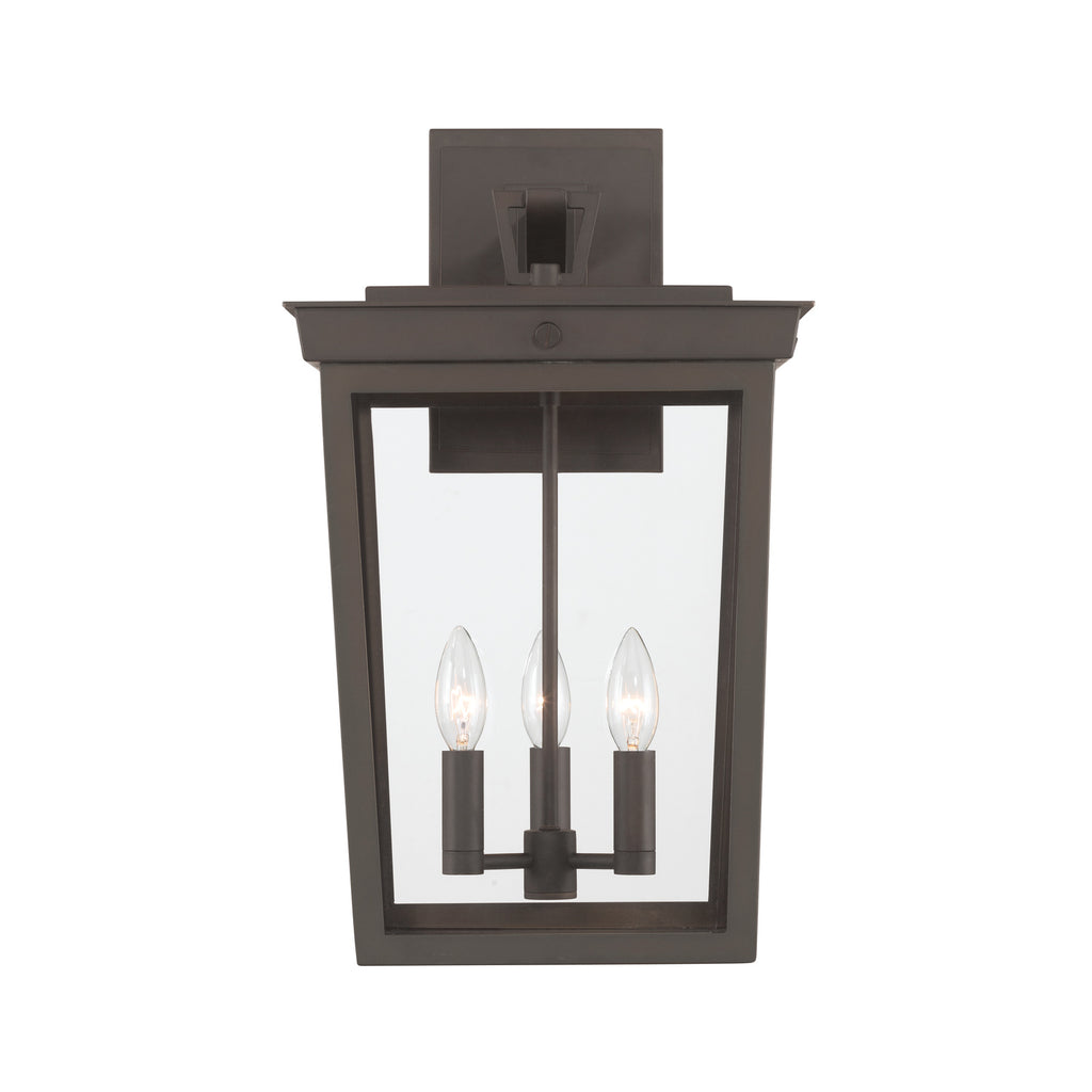- The Belmont's stately lantern silhouette adds architectural appeal and visual interest for a wide range of exterior spaces. Inspired by the iconic shape of street lanterns, the Belmont's modern tapered rectangular box, clear glass panels, and exposed bulbs will add a contemporary illumination and curb appeal to your home.