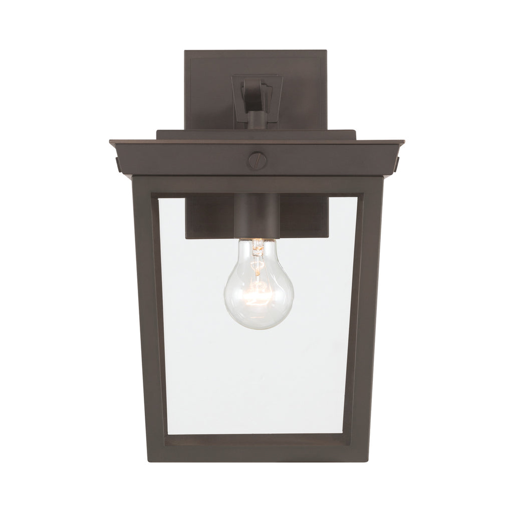 - The Belmont's stately lantern silhouette adds architectural appeal and visual interest for a wide range of exterior spaces. Inspired by the iconic shape of street lanterns, the Belmont's modern tapered rectangular box, clear glass panels, and exposed bulbs will add a contemporary illumination and curb appeal to your home.