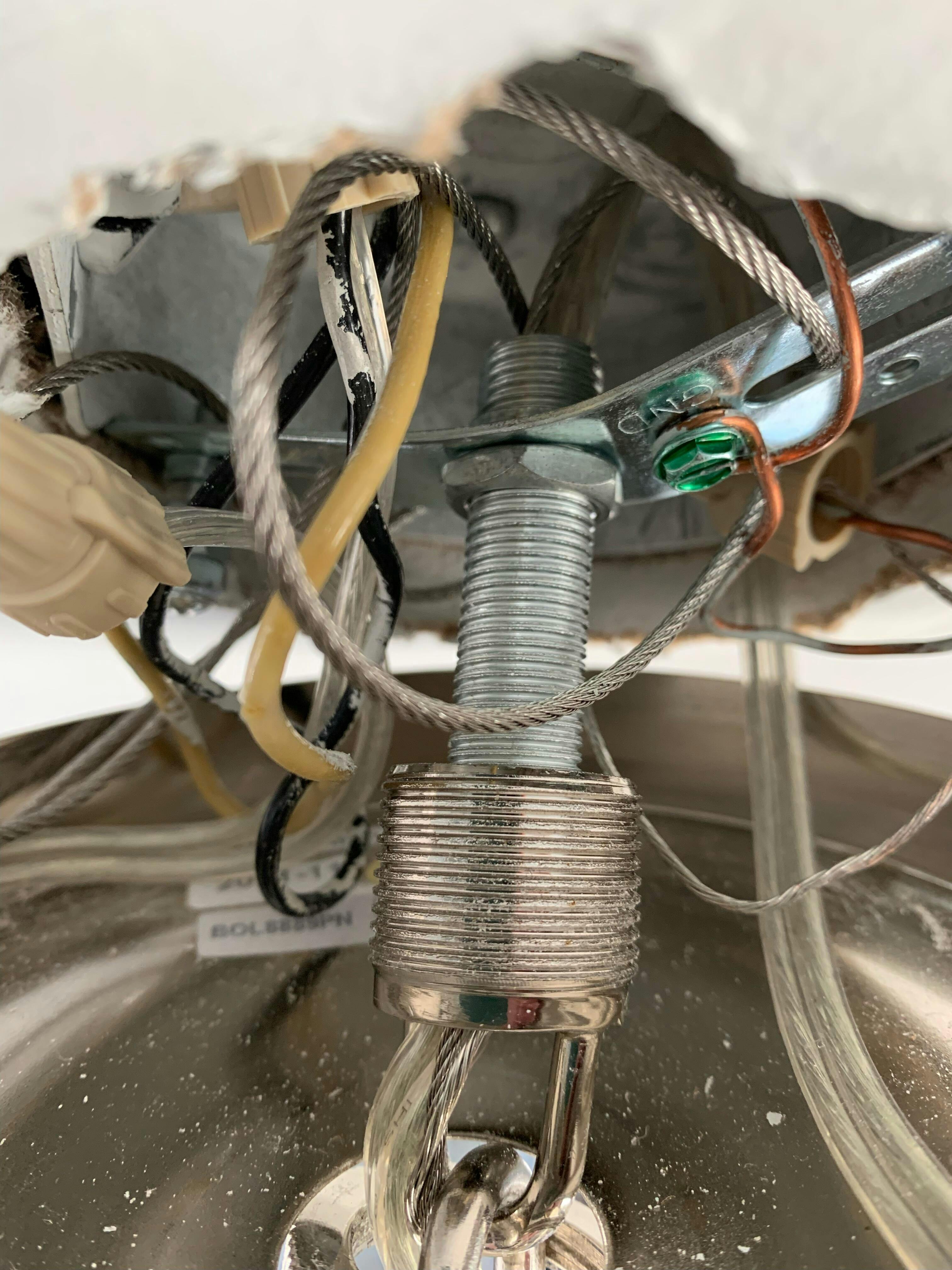 When we went to raise this chandelier a few inches we saw that the cross bracket was severely bent. The chandelier is too heavy for the hardware provided. We purchased from Lighting New York and they refused to do anything except replace the bracket with one exactly like it. We asked to exchange the heaviest chrystals with smaller ones to lighten the load but Chrystorama refused. IMO this chandelier is unsafe. We took chrystals off to lighten it. It looks terrible. Such incredibly poor customer service.