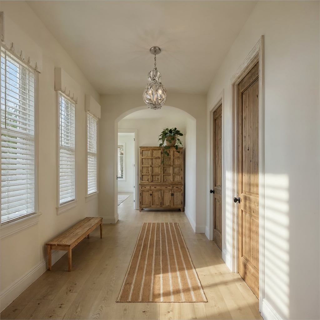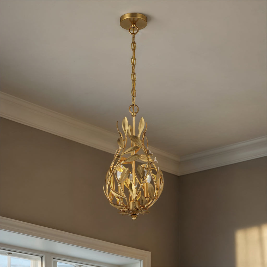 - Individual wrought iron leaves deliver a stunning, unique, and functional light. The tailored elegance of the shimmering metallic florals is perfect for a transitional home though versatile enough to be incorporated into any modern design. While ideal for a bedroom, living area, or kitchen, it can be used anywhere you want to add a bit of glam.