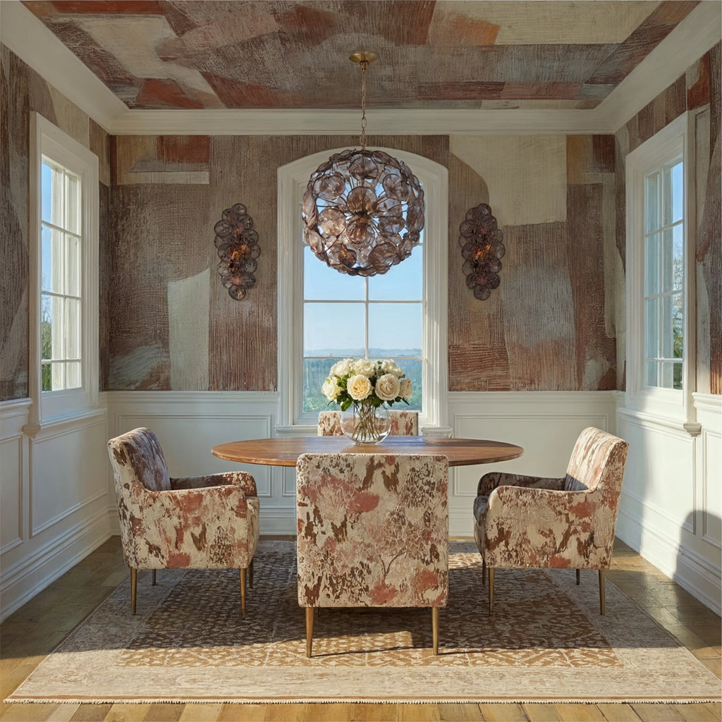- The Esme collection is a modern take on the iconic Sputnik design, blending vintage sophistication with a fresh, dynamic twist. Its array of brass rods extend outwards, culminating in hand-blown art glass shaped like delicate flower petals. This striking piece transforms a room, offering a different visual experience whether it's illuminated or not—sophisticated and bold when off, subtly whimsical and glowing with warmth when on. Esme's timeless charm and playful elegance stand out in any space.