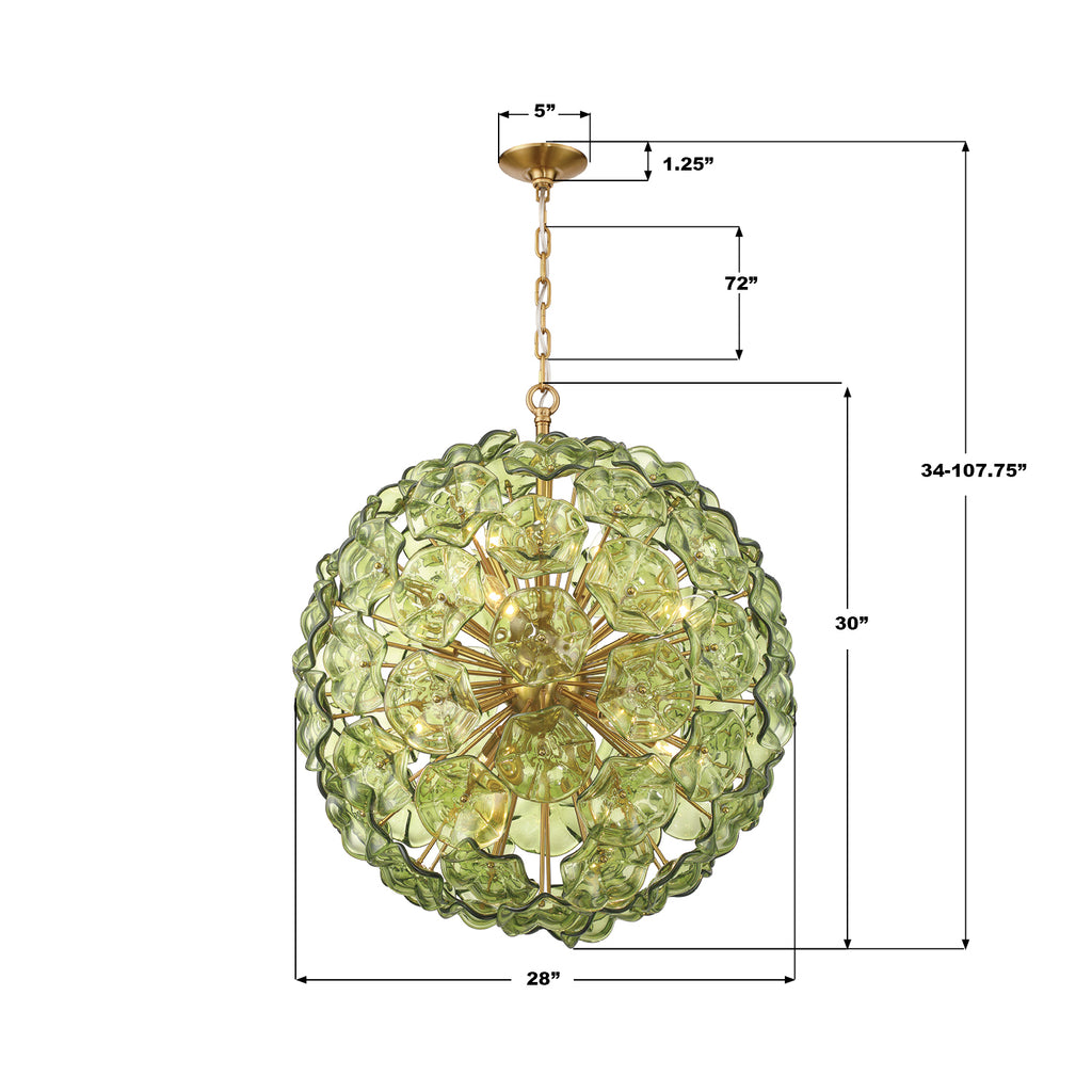 - The Esme collection is a modern take on the iconic Sputnik design, blending vintage sophistication with a fresh, dynamic twist. Its spherical core anchors an array of brass rods extending outward, culminating in hand-blown art glass shaped like delicate flower petals. This striking piece transforms a room, offering a different visual experience whether it's illuminated or not—sophisticated and bold when off, subtly whimsical and glowing with warmth when on. Esme's timeless charm and playful elegance stand out in any space.