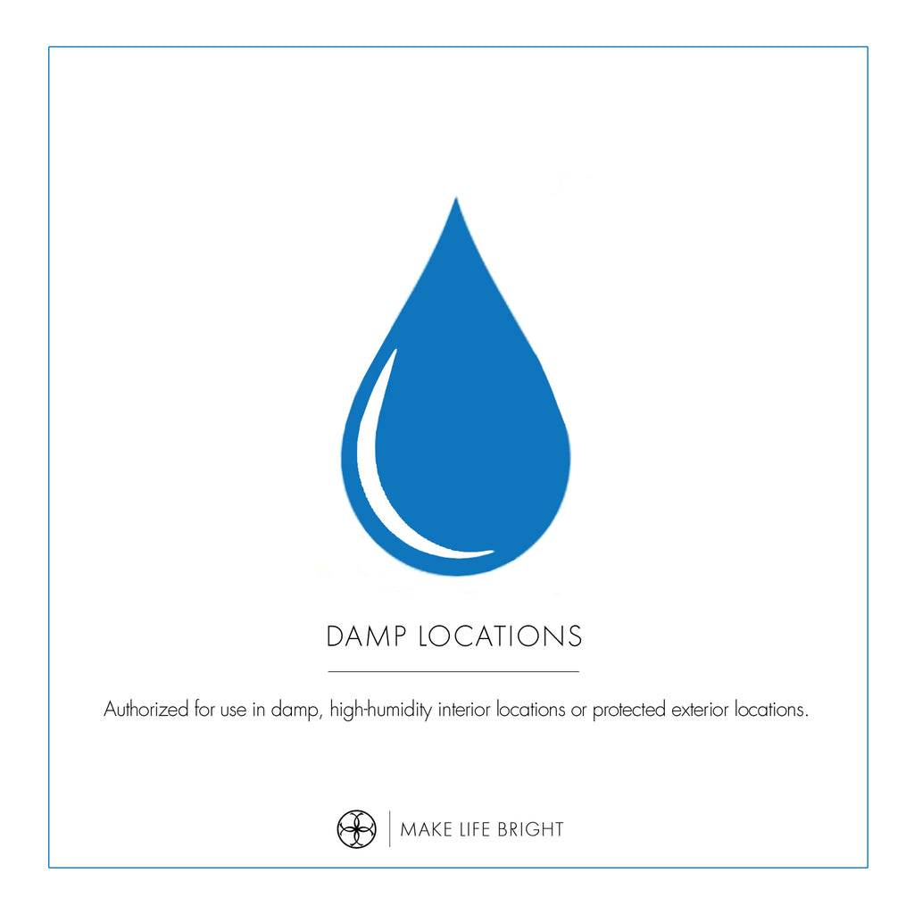 • Authorized for use in damp, high-humidity interior locations or protected exterior locations. Meets United States UL Underwriters Laboratories Product Safety Standards